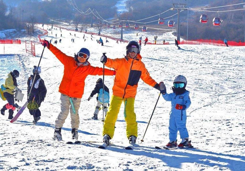 来自南京的一家人在雪场拍照,定格冬日美好记忆。
