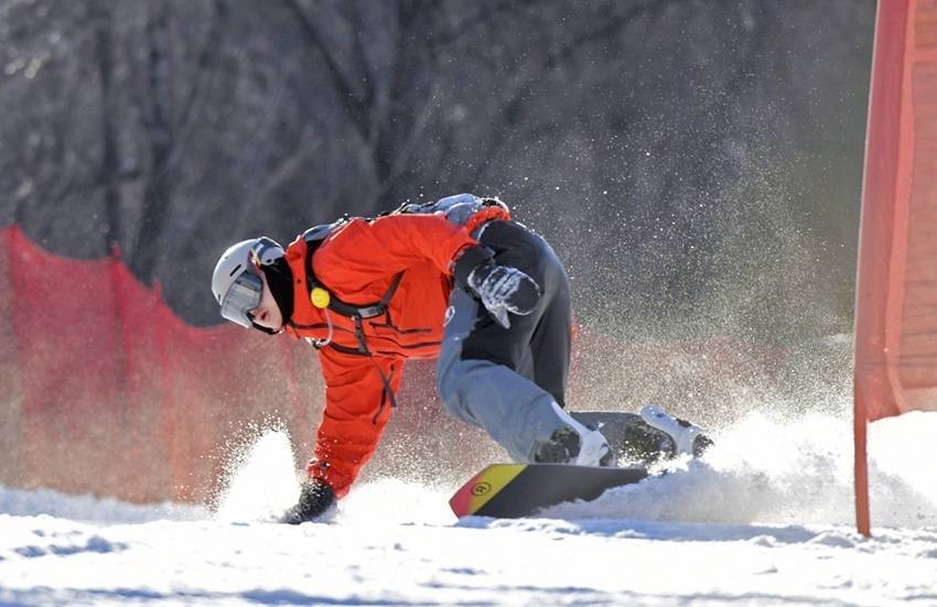 滑雪少年以雪为台,用流畅舒展的滑行轨迹勾勒对冰雪运动的热爱。
